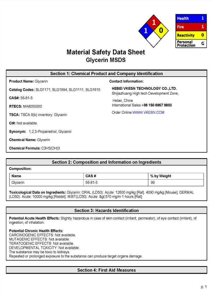 Glycerin is an organic compound with a chemical formula of C3H8O3. It is a colorless, odorless, transparent viscous liquid that can absorb moisture from the air, as well as hydrogen sulfide, hydrogen cyanide and sulfur dioxide. Miscible in any proportion, insoluble in benzene, chloroform, carbon tetrachloride, carbon disulfide, petroleum ether and oils, mainly used as organic chemical raw materials, also used as analytical reagents and lubricating laxatives.